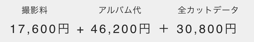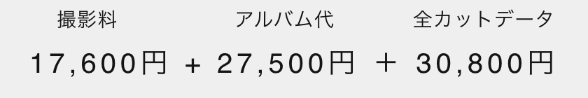 ※撮影料は多ポーズ(ひとり+家族)の撮影料で掲載しております。1ポーズ(ひとり)の撮影料は8,800円となります。